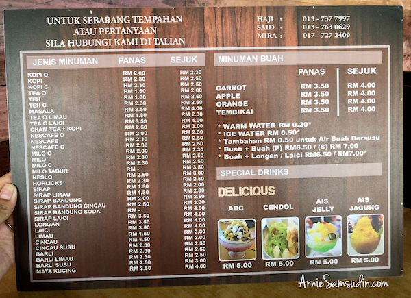 Menu di Restoran Kacang Pool Haji